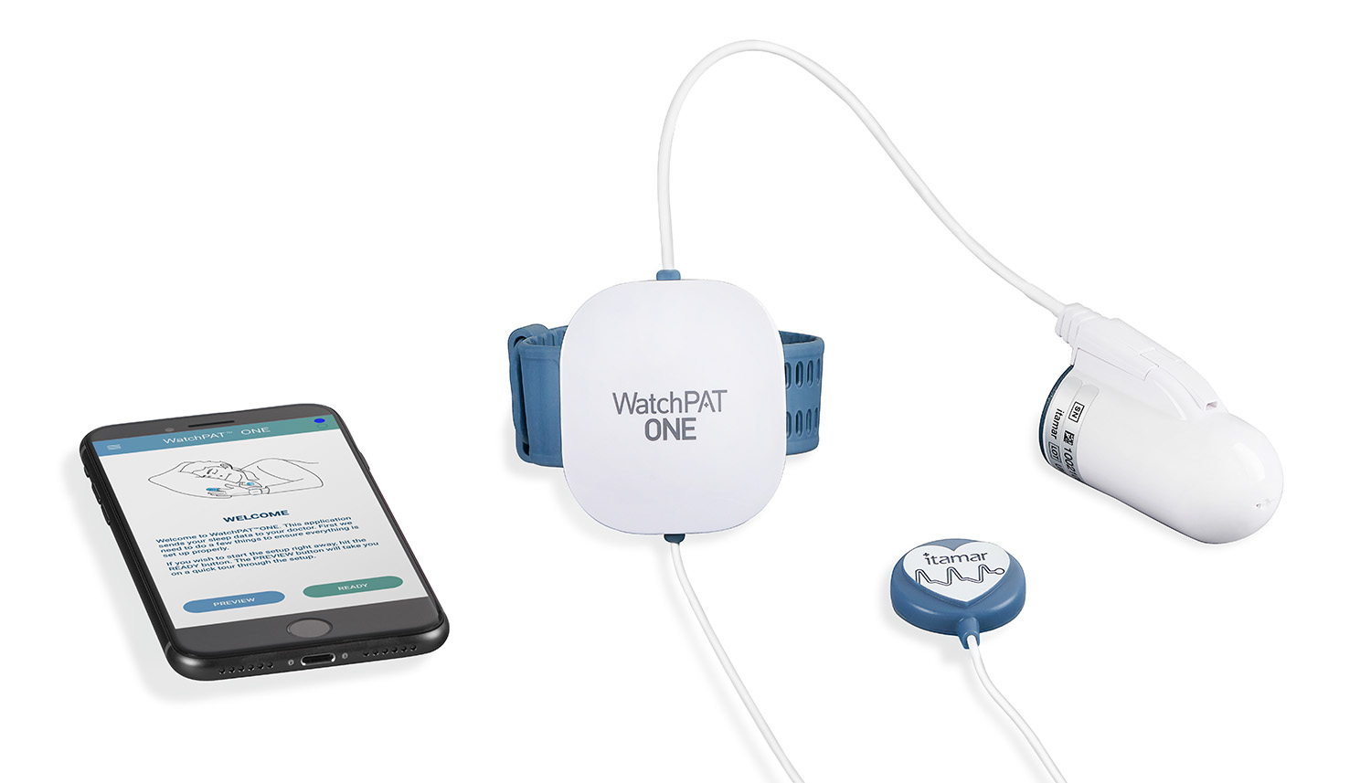 Der WatchPAT® ONE ist ein Einmal-Anwendungssystem zur ambulanten Diagnostik schlafbezogener Atmungsstörungen. Das System basiert – wie der WatchPAT® 300 – auf der Peripheren Arteriellen Tonometrie (PAT®) und ermöglicht die Detektion respiratorischer Ereignisse über autonome vasomotorische Veränderungen, ohne Einsatz thorakaler oder abdominaler Atemgurte sowie ohne nasale Flusssensorik.